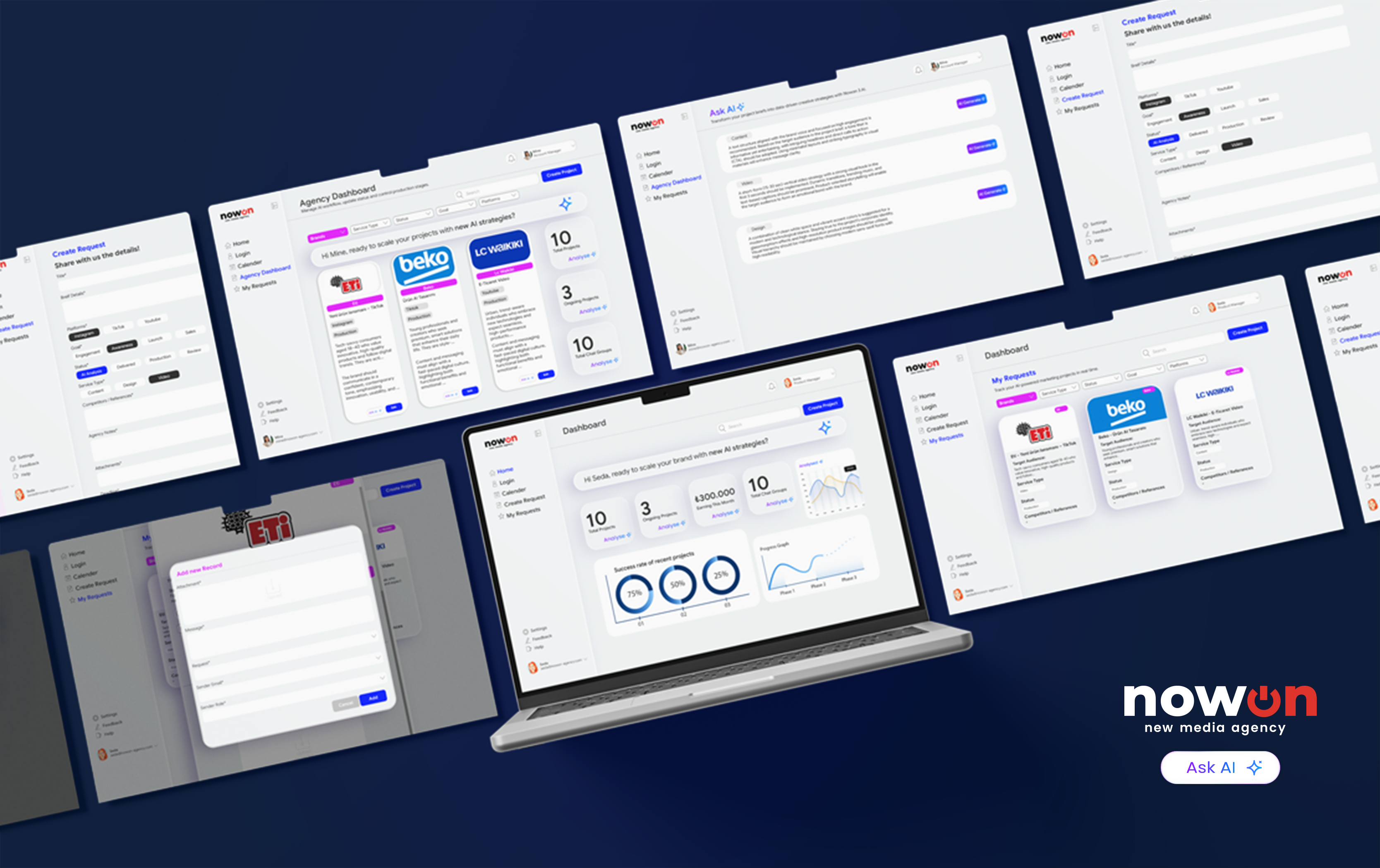 Submit your marketing requests, get AI-powered strategy, and track your content, influencer and video production in one unified platform managed by Nowon Agency.